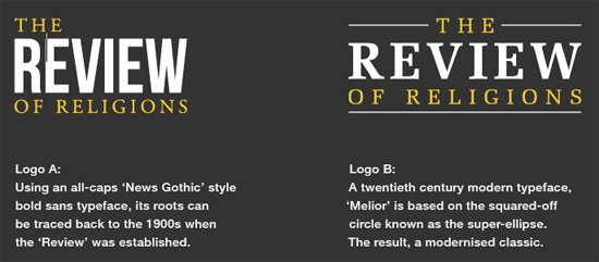 In 2011, we embarked on the immense task of designing a new logo for The Review of Religions, which needed updating for the modern age. After extensive and exhaustive deliberations, iterations, and healthy but robust debate amongst the team, and consultation from people outside the team, we shortened the options to two. Interestingly, when I presented these options to His Holiness, He guided that we should feature both of these options in The Review of Religions for six months each, measure the feedback from readers, and then settle on the choice preferred by the majority.