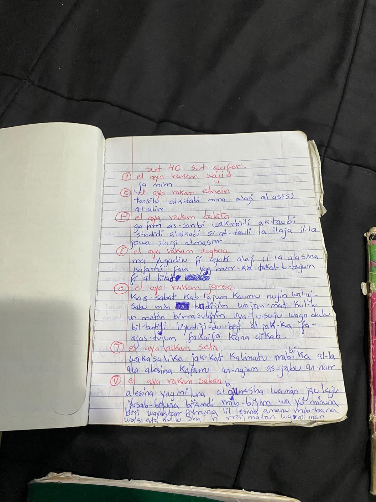 During the COVID-19 pandemic, Fatima wrote down the entire Qur’an in her notebooks, both in Arabic and in Spanish.