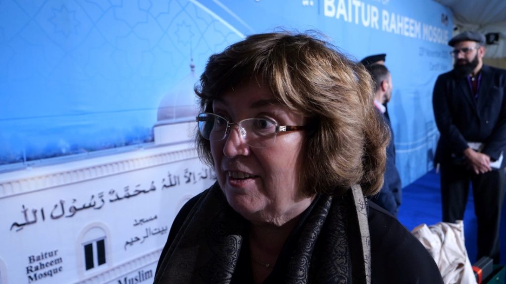 My name is Sue White, I was a former Cardiff Councillor and I took a stand for the Ahmadiyya community and supported you through the discrimination that you faced during planning application.