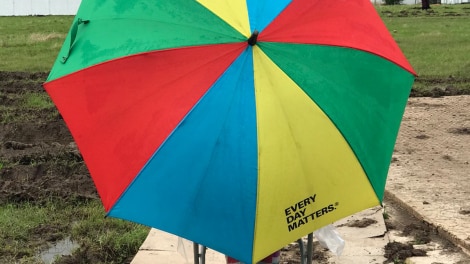 A Jalsa volunteer stayed on duty even in the rain. This led someone passing by to give her their umbrella, because she needed it more!